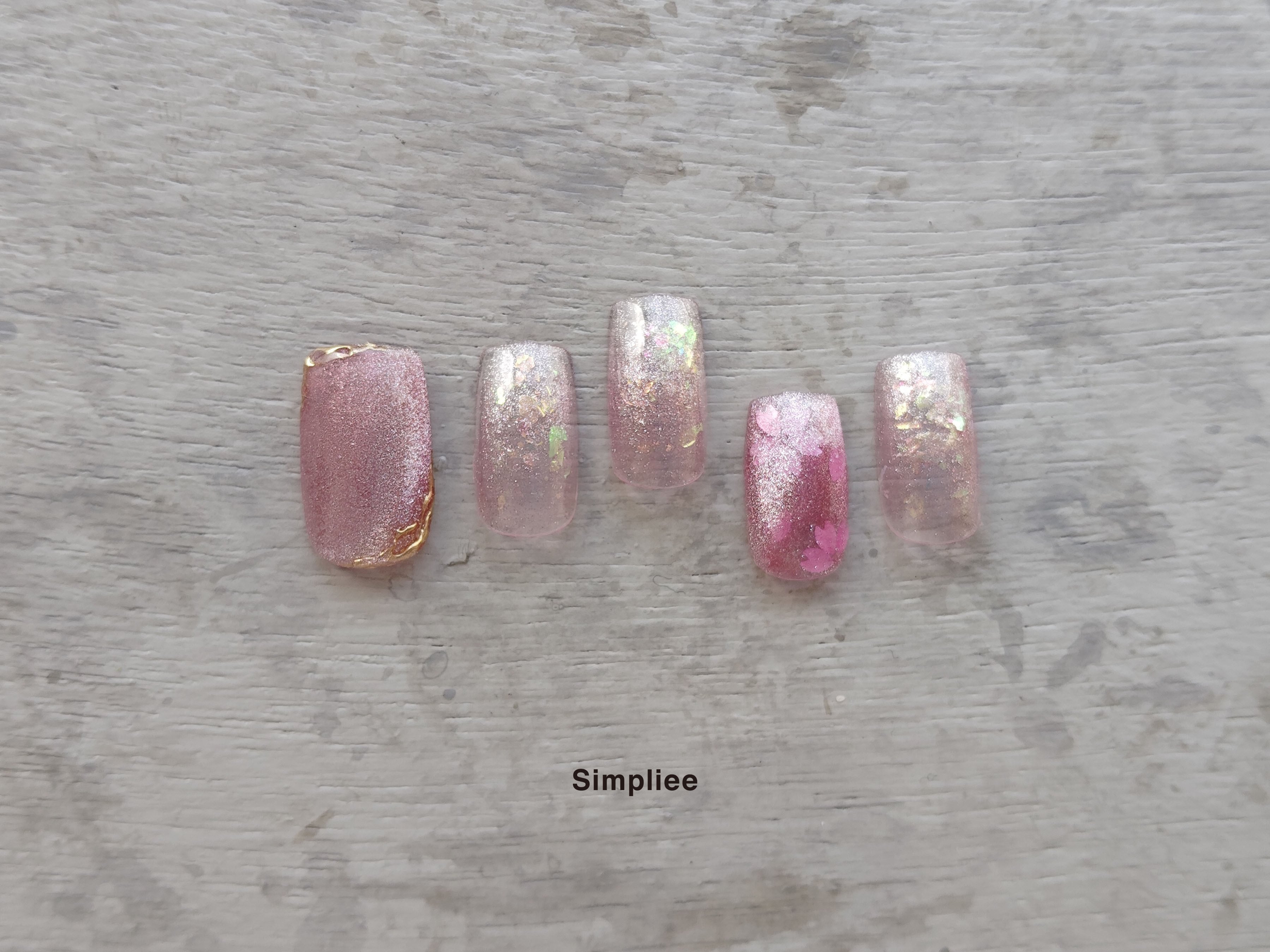 使用製品:マグネットジェル(003MG)/ホログラム / 桜シリーズ(No.5 マゼンダ)/ダズリング オーロラグリッター パステル(サクラ)/ミラーパウダー(ゴールド)